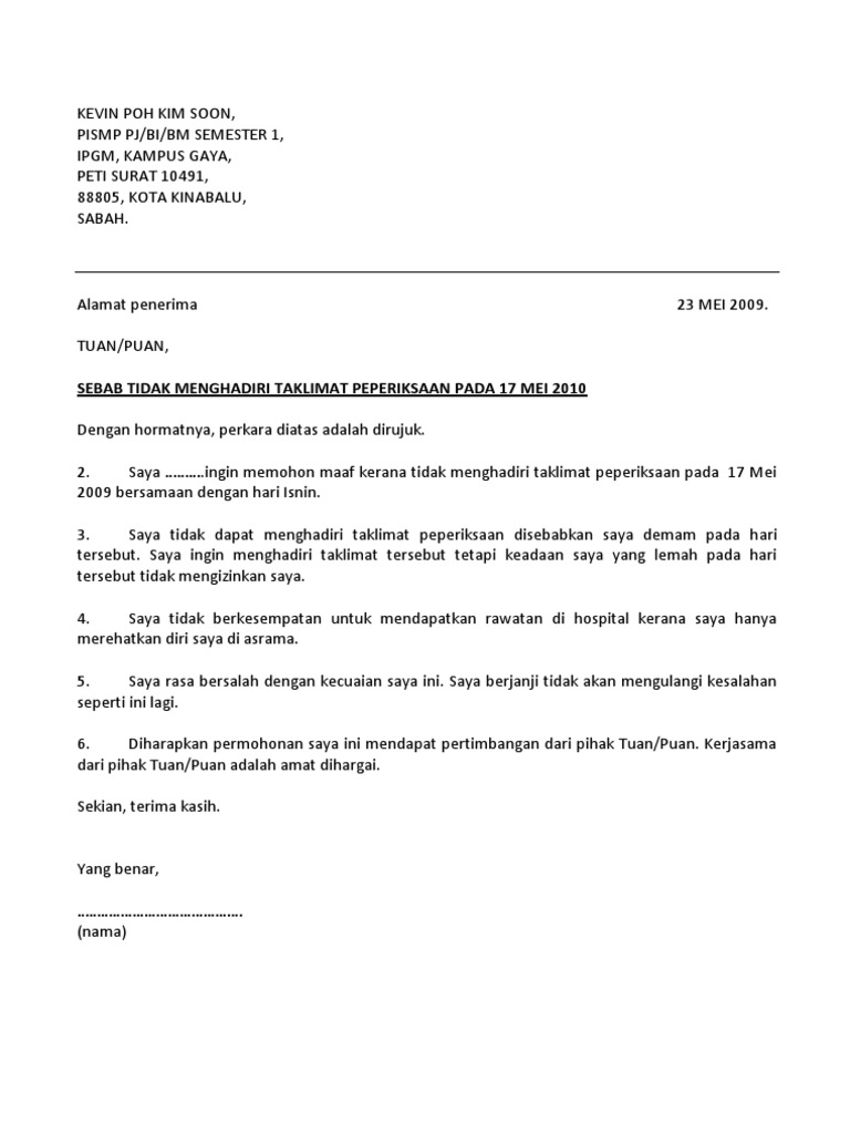 Surat Rasmi Tidak Hadir Ke Sekolah Kerana Masalah Pengangkutan. Siti nurlyana bt mohd fasiah cov080712701 nurhazwani sara bt rasidi cov081213105 syibratun bt hashin cov081213150 siti faiezah bt azlan cov081213. Contoh surat kiriman rasmi memohon maaf.