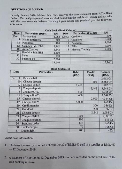 Solved Question 4 20 Marks In Early January 2020 Melawi Chegg Com
